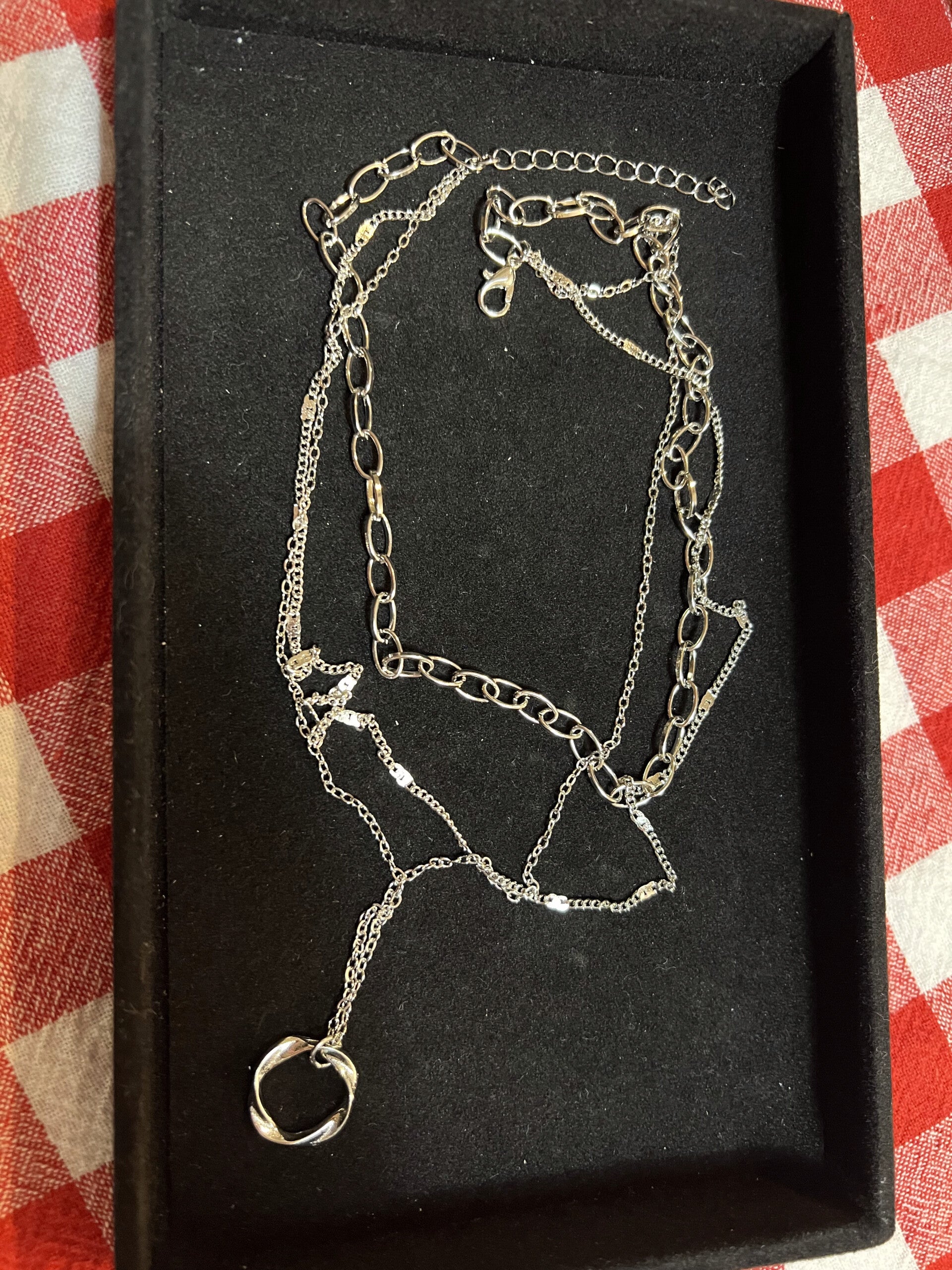 This elegant Italian-inspired triple layer silver necklace features a beautifully designed twisted metal circle centerpiece, creating a stylish focal point that is both modern and timeless. The layered design adds depth and sophistication while maintaining a delicate, refined look. Beautifully crafted with elegance and class, this necklace shines with subtle detail and polished finish. Perfect for dressing up any outfit, it’s a piece that is sure to turn heads and spark compliments wherever you go.